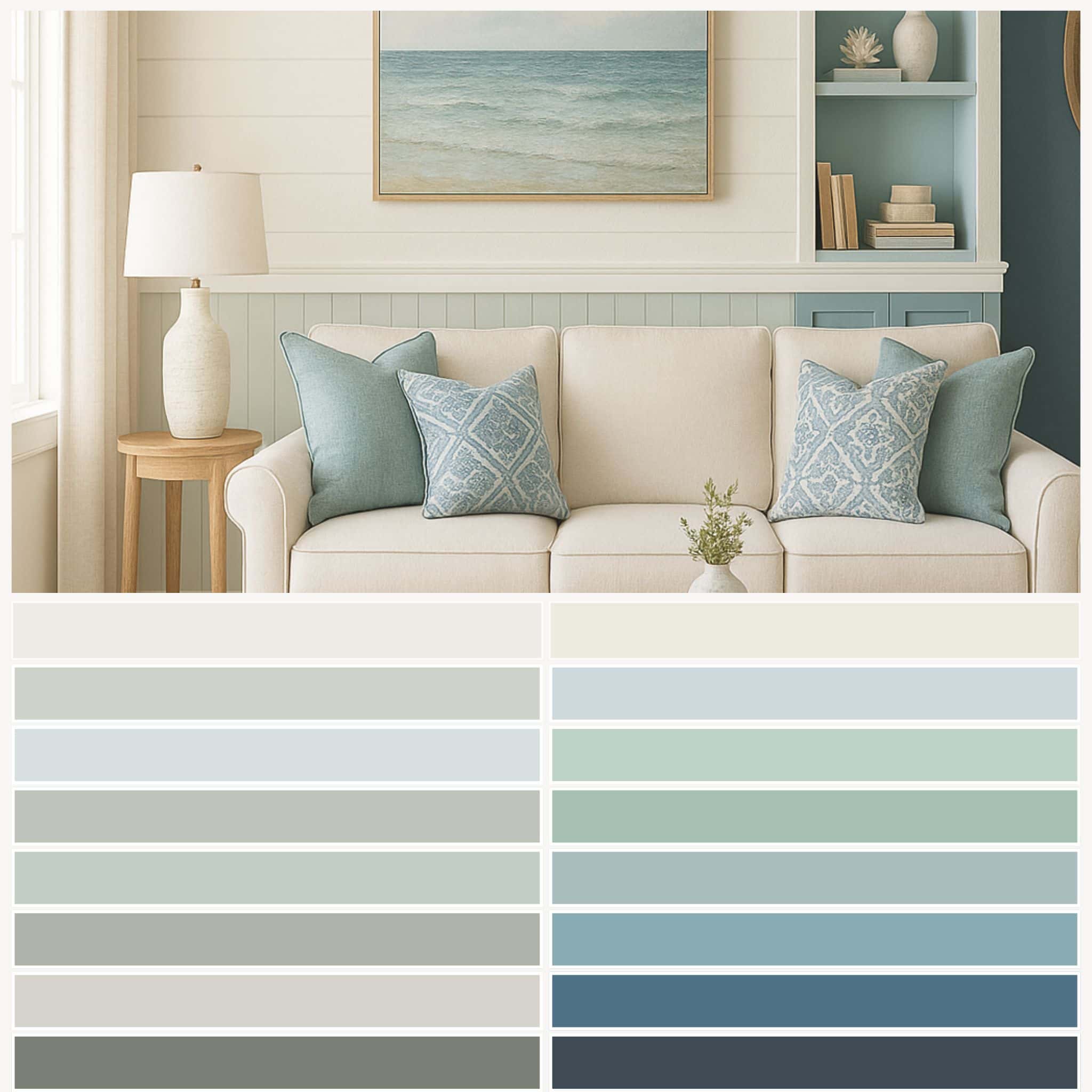 Struggling with paint colors? My Coastal Whole House Paint Palette gives you 17 coordinated coastal-inspired shades, plus helpful guides on sheen, sampling, and paintingโso your home feels cozy, cohesive, and perfectly coastal.