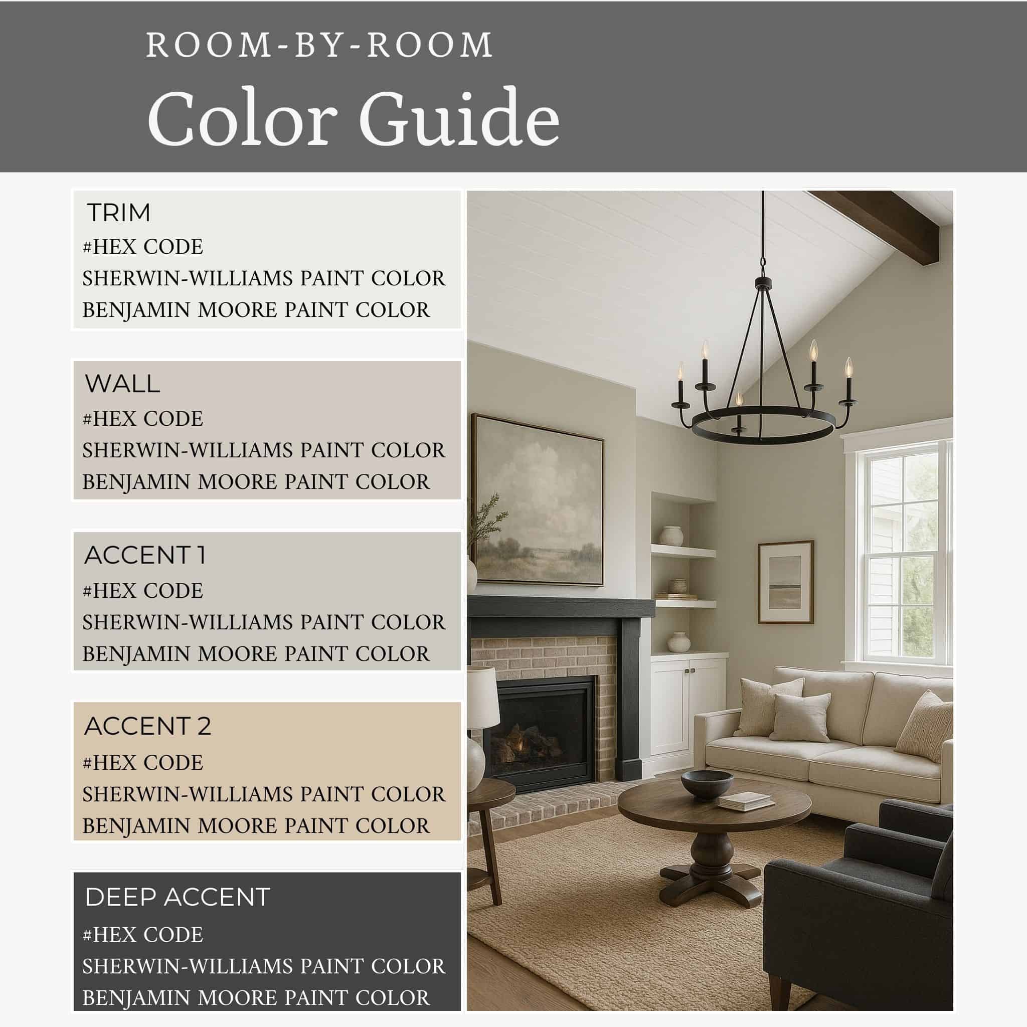 ๐จ 17 curated shades (3 consistent anchor colors + 2 accents per room)